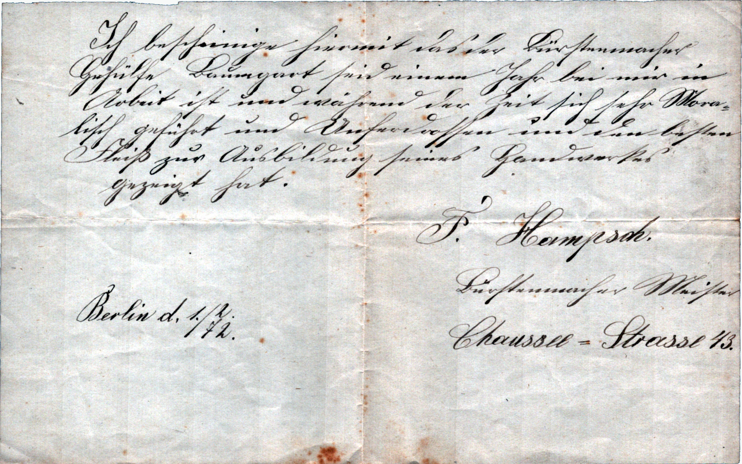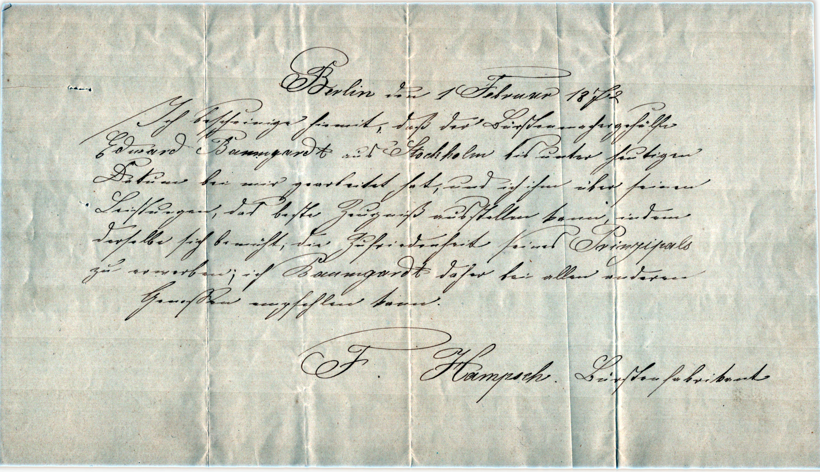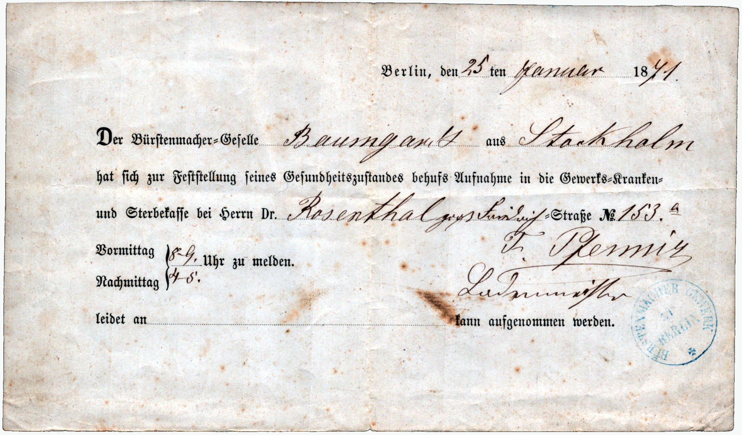 Min mormors morfar G. E. Baumgardt utbildade sig till borstbinderimästare bl.a. i Berlin 1871-72.