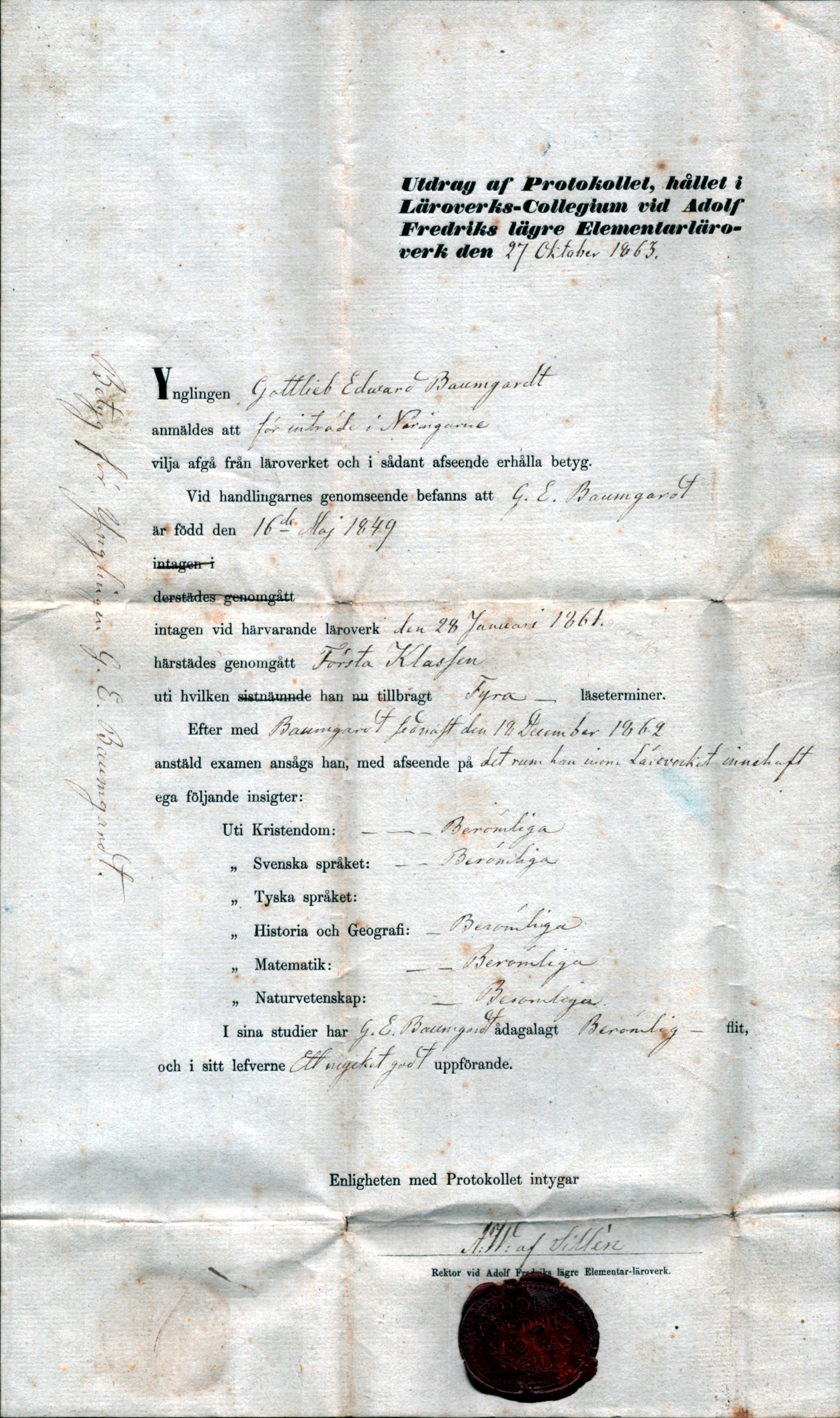 Edward Baumgardt aus Stockholm bis unter heutigen