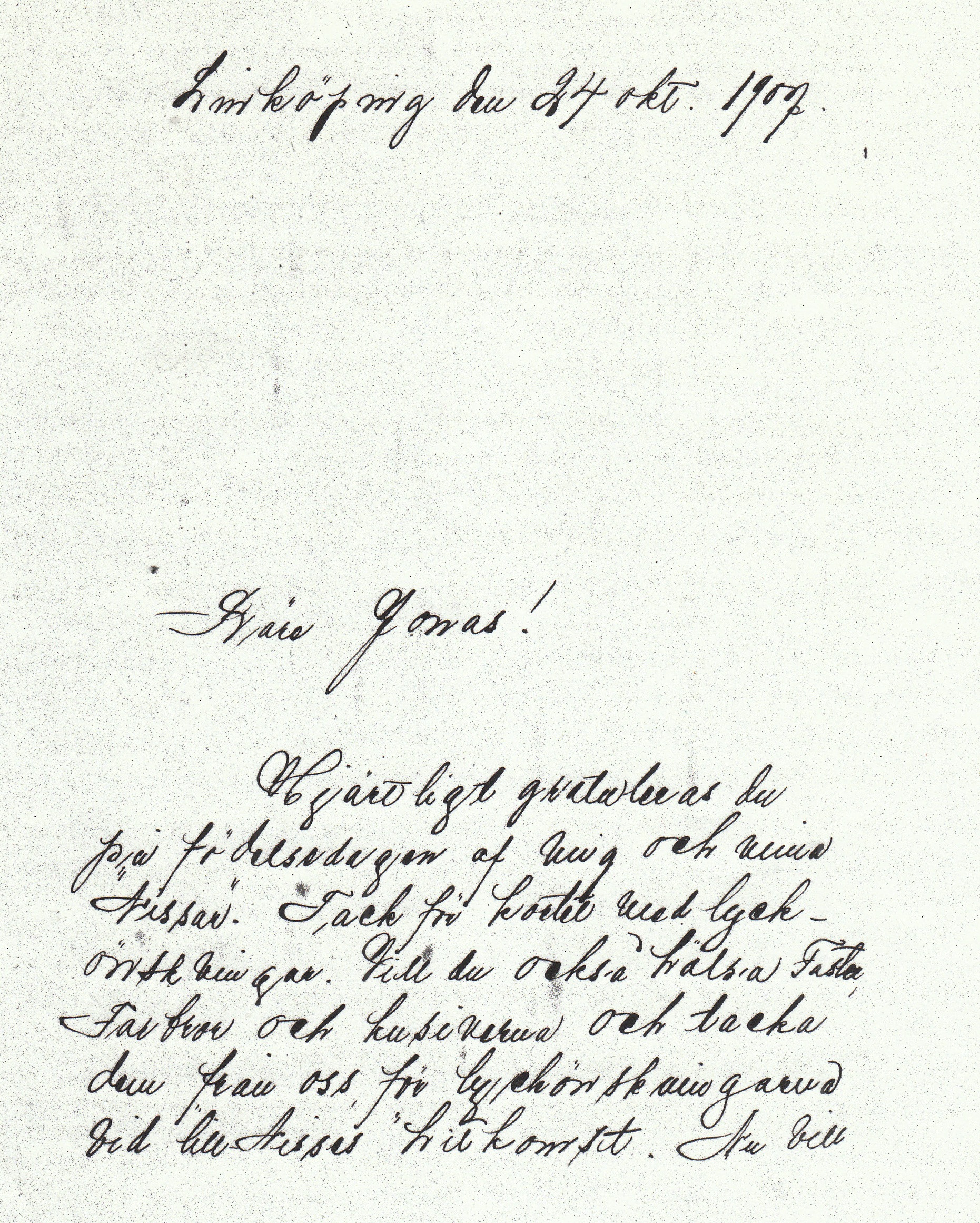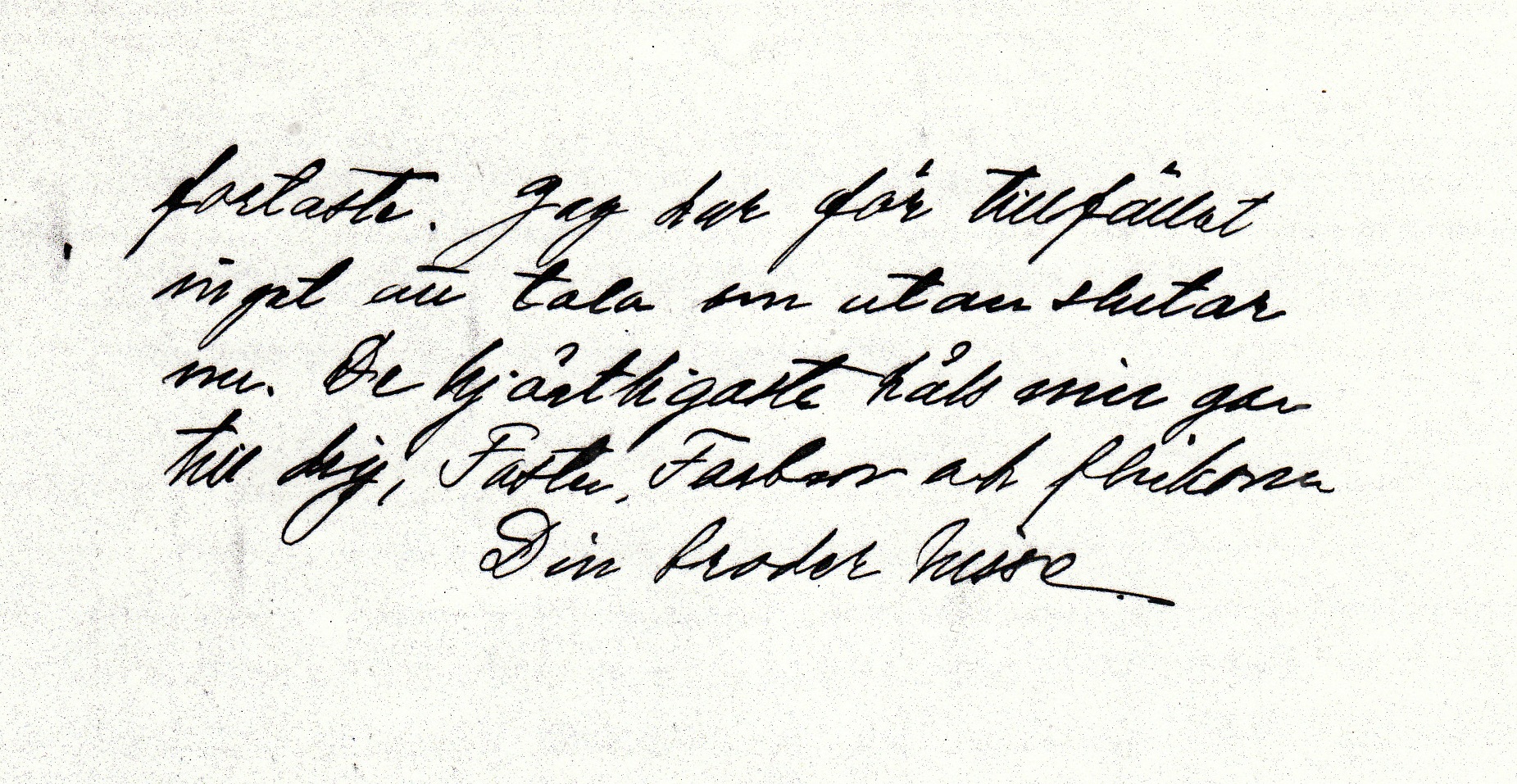 - Nu måste jag sluta, med de hjärtligaste hälsningar från oss alla genom Nana.