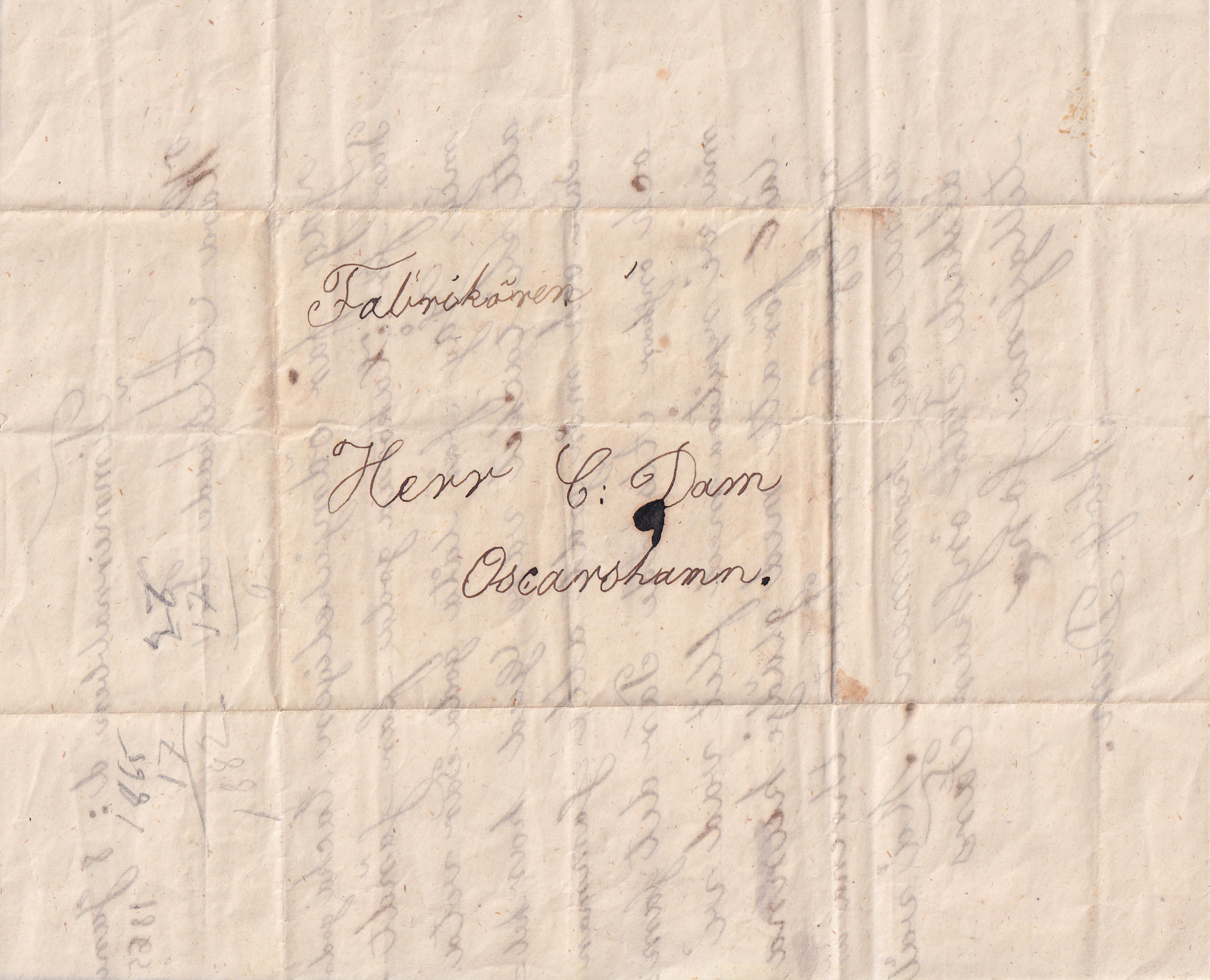 Brev från Adolf Dam i Timmernabben till Carl Erasmi Dam i Oskarshamn 8 juni 1865