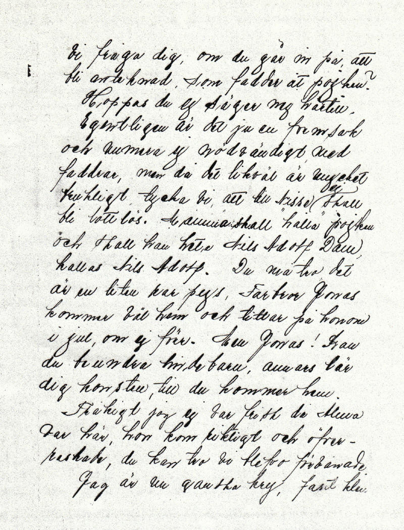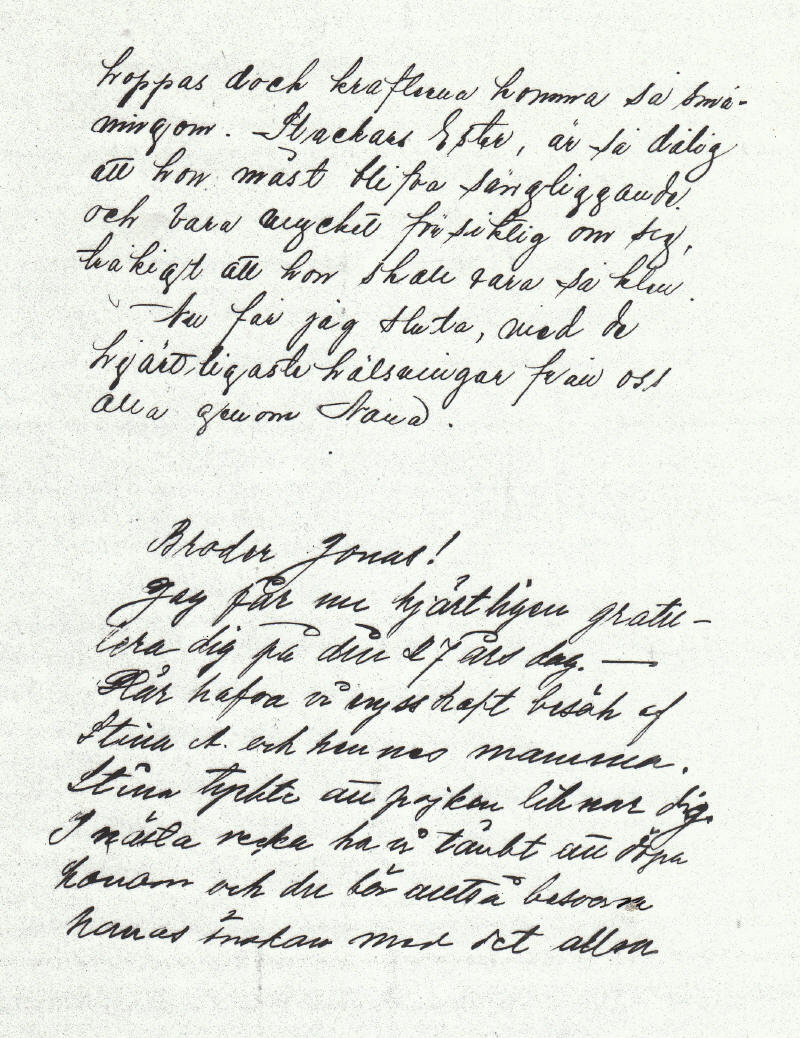 - Nu måste jag sluta, med de hjärtligaste hälsningar från oss alla genom Nana.