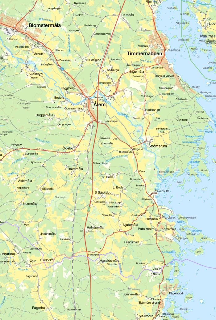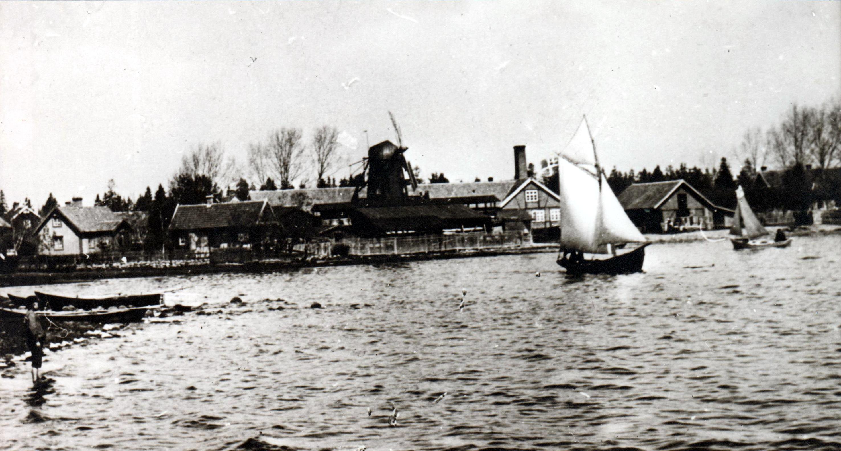 Roddbåt fick vi låna så mycket vi ville av mormors kusin Anna Hertzman och hennes mamma Johanna Petersson, änka efter förutnämnde Johan Gustaf Petersson. De bodde alltjämt i familjen Pettersons fina hus vid Torget i Pataholm. Snett åt höger från huset sett fanns en till huset hörande utäga, som sträckte gig från torget ned till stranden, där det låg två gamla bodar, byggda i flera våningar. Mellan dessa bodar fanns en liten strandremsa, vid vilken familjen Petersson hade två roddbåtar förtöjda. Båtarna kunde utrustas med mast och segel, men vi använde dem endast för rodd. Anna Hertzman var sedan gammalt mycket god vän med Mor och inte så mycket äldre än hon. Anna och hennes make Adolf Hertzman, som hade en cementvaruindustri i Aneby, var oftast med oss, när vi rodde till Grimskär. Vid sådana tillfällen hade vi matsäck med oss och tog oss god tid. Makarna Hertzman var också oftast tillsammans med oss, när vi - som ej sällan hände - rodde till Alsteråns mynning och ett stycke upp i ån. Både i ån och på vattnet närmast utanför mynningen växte det vita näckrosor i stor mängd. Och utefter ån växte fin ekskog. - När vi promenerade till eller från Pataholm, gick vi gent på ett par ställen. Vi kom då bland annat att gå genom Strömsrums ängar; ängar som sträckte sig ända fram till ån. I ängarna växte en stor mängd prästkragar och slåtterblommor och många andra vackra blommor. Dessa ängar blev tyvärr så småningom uppodlade, så att man inte längre kunde gå där.