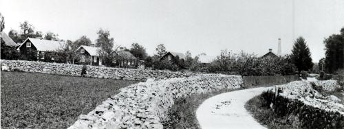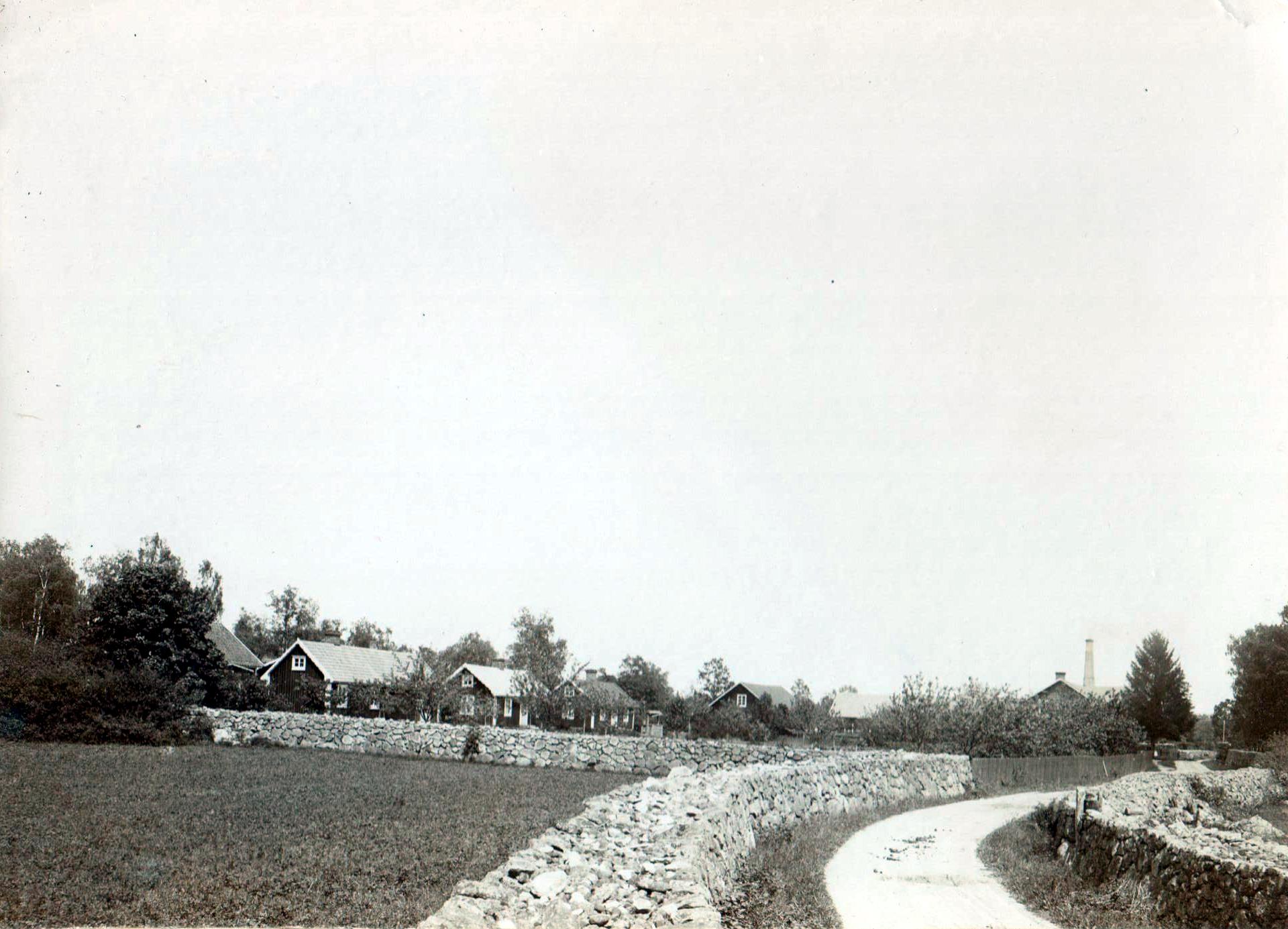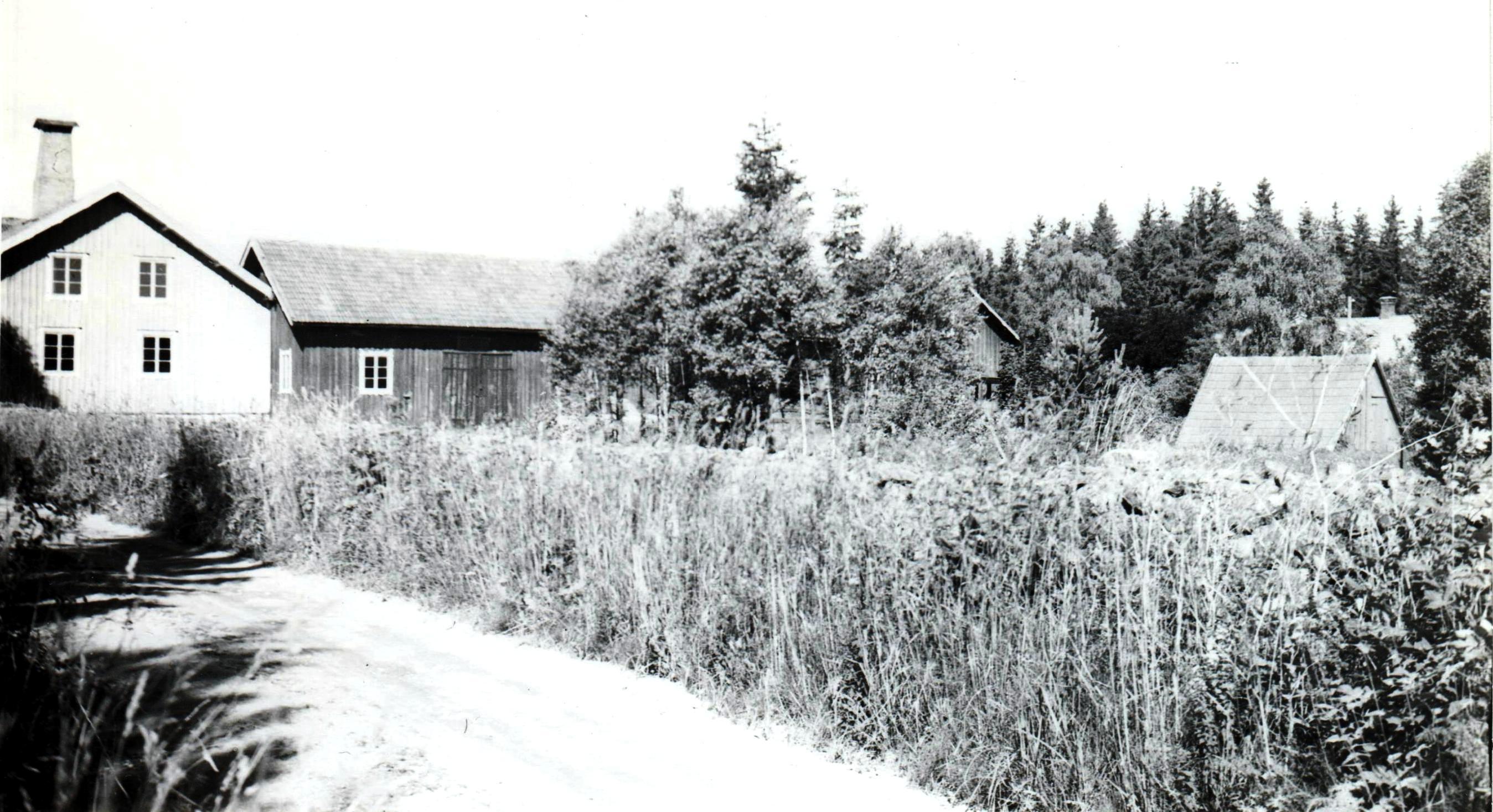 Greta och jag gick också ofta till gården, där vi hälsade på hos Faster Anna och Faster Augusta och hennes barn, som efter sin far hette Bohm i efternamn. Karl Bohm hade nästan alltid en papegoja, ibland två. Dem måste vi förstås se på. Men ännu oftare gick vi till Faster Annas höns och hennes hushållsgris. Hönsen brukade vi mata med maskrosblad och våtarv och grisen fick svinmålla och en del annat han tyckte om. Vi brukade också klia grisen på ryggen med en pinne. Det tyckte han tydligen var skönt. Det var också mycket annat man kunde få se vid gården, bland annat mjölkning. Det fanns ungefär 20 kor och en fullvuxen tjur med ring i näsan. Han brukade få gå på bete tillsammans med korna. Vi kunde också se på när man körde hö eller säd från fälten till gårdsbyggnaderna. Som dragare användes då både hästar och oxar. Oxarna såg vi ofta vid tider, då de "hade ledigt". De brukade då ligga och idissla i en hage alldeles intill vägen från fabriken till gårdsbyggnaderna. De gav ett slött intryck men de var starka. - för Greta och mig var det mycket stimulerande att få bo invid en bondgård, där vi kände oss nästan lika hemmastadda som hos Mormor och Morfar.