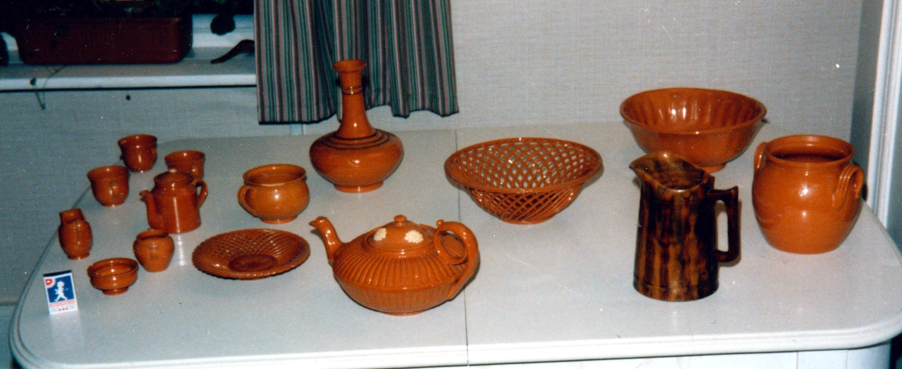 Vi försökte oss på att dreja själva och använde då ett rum i fabrikens övervåning, där det fanns två drejskivor som inte utnyttjades. Vi lyckades helt naturligt inte så bra med drejningen. Men jag har ändå kvar två små vaser och ett par små och enkla skålar, som inte blev sämre än att de kunde brännas och glaseras. Den behövliga avsvarvningen av vaserna gjorde dock en av drejarna. Det var för svårt för mig. Vi tillverkade också leksaksdjur i kompakt lera, sådana som vi själva brukade leka med. De gjordes i formar och med den tillverkningen lyckades vi så bra, att djuren kunde säljas, sedan de bränts och glaserats. Det rum vi satt i hade förut begagnats av Faster Anna, som deltagit i arbetet på fabriken fram till något av de första åren under 1900-talet. Hon hade då bland annat tillverkat sparbössor, som bränts endast en gang, varefter hen målat dem med oljefärg. En inpyrd terpentindoft i rummet påminde alltjämt om Faster Annas målning.