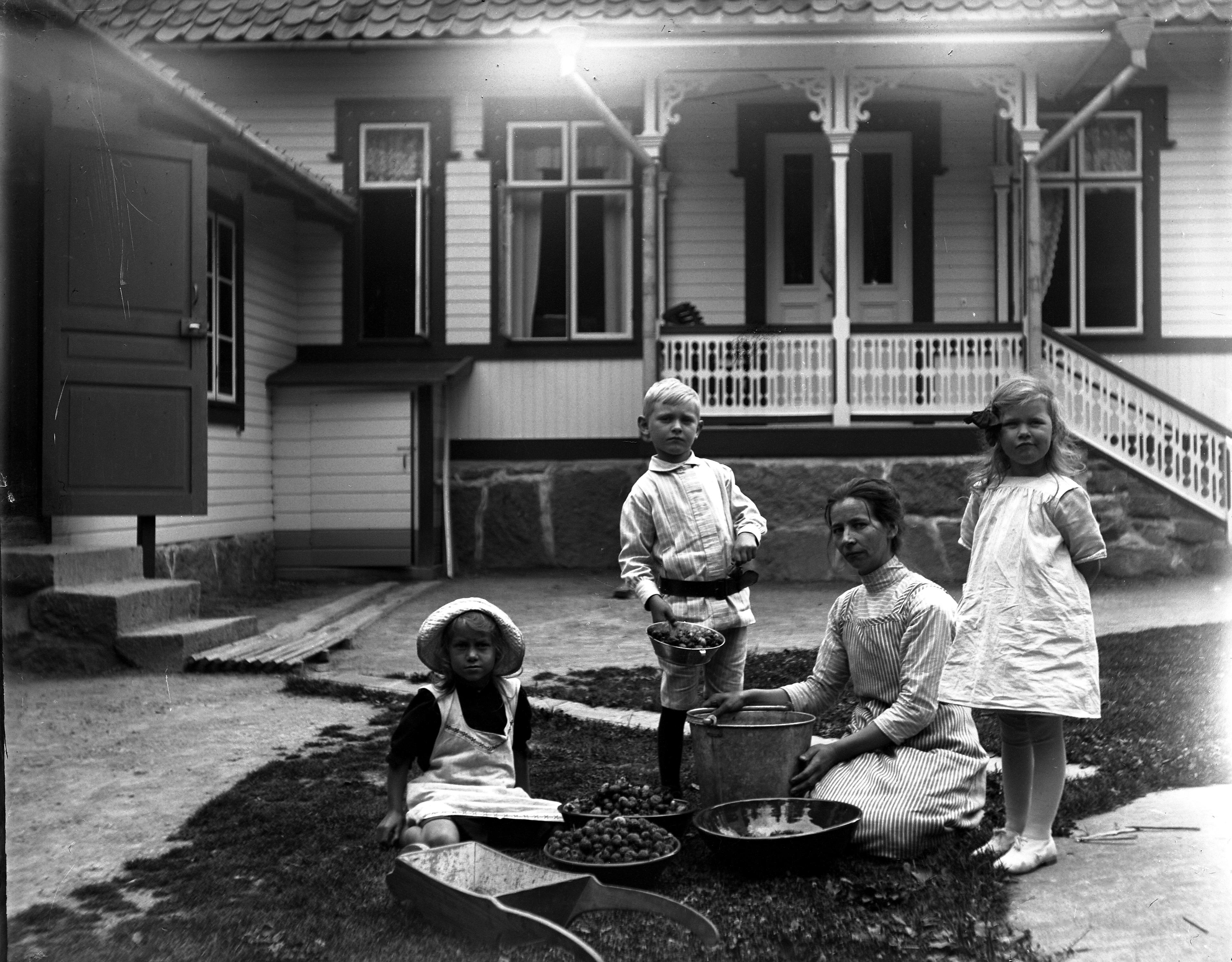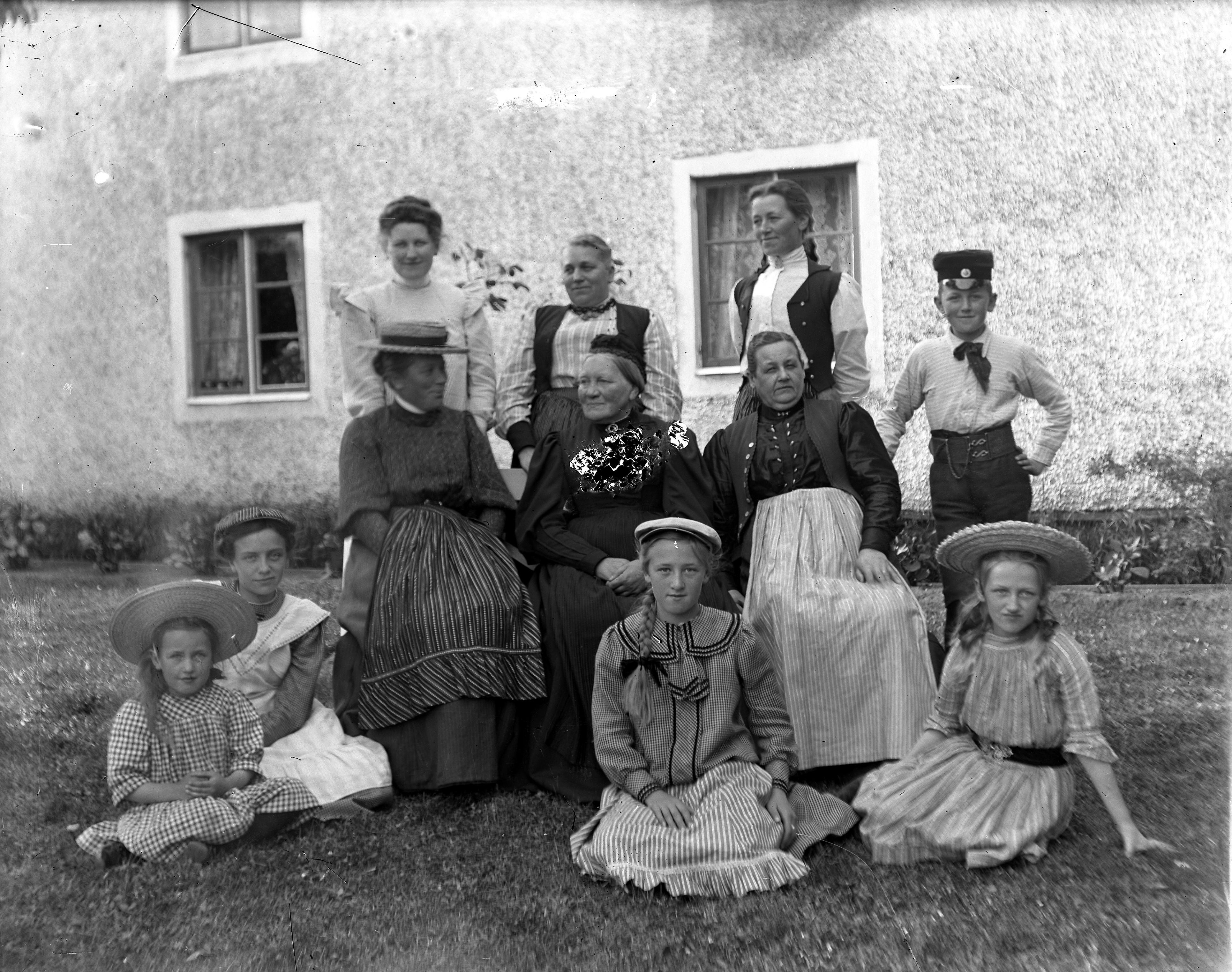 Detta foto är taget vid Boda gård utanför mangårdsbyggnadens södra fasad omkring 1904. Mitt i bilden sitter tre damer. De är från vänster räknat: faster Anna, ägare till Boda gård, Trine Dam, f.d. hotellägare, Rönne, samt min Mormor Josefina. Bakom dem står min Mor Juliana (Nana), faster Helen, gift Ankarberg, och faster Augusta, gift Bohm. Till höger om faster Augusta står hennes son Karl. De tre flickorna närmast kameran är alla döttrar till faster Augusta: Efter ålder räknat, Anna-Lisa i mitten, Karin till höger och den yngsta, Rosa, längst till vänster. Snett bakom Rosa sitter faster Helens dotter Maja.