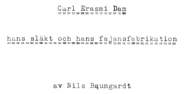 En berättelse om Carl Erasmi Dam, hans släkt på Bornholm och i Sverige samt hans fajansfabrikation i Småland, främst i Boda